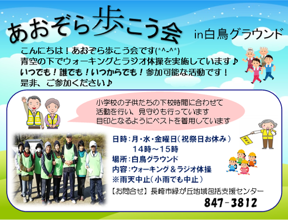 今回は、健康福祉分野事業のひとつである「あおぞら歩こう会」事業をご紹介します。