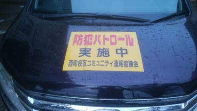 休日パトロールでは、毎回多くの保護者の方にご参加をいただいており、徒歩での巡回と同時に地域安全活性化事業の一環として作成した『「防犯パトロール実施中」マグネットシート』をつけた車両での巡回も行っています。