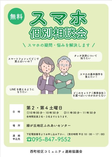 西町校区コミュニティ連絡協議会では、地域の高齢者向けに『スマホ個別相談会』を定期的に開催しています。