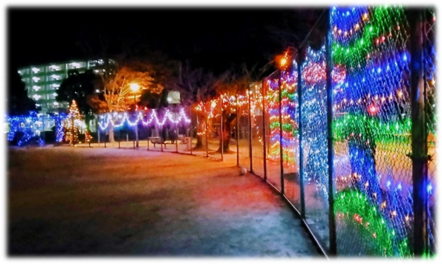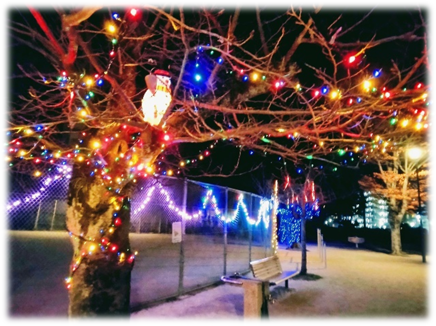 冬の夜の公園に点灯し、年末年始の西町に新しい景色が広がりました